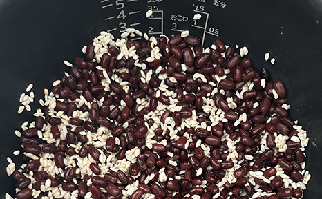 小豆を炊飯したあと、水分量がかなり少なくなってしまった場合は、60°Cのお湯を足して、水分量を調整してみてください。