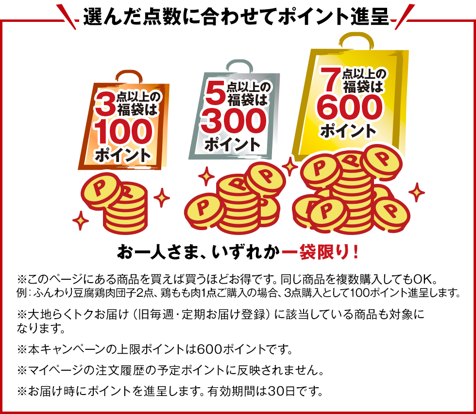 新春記念で「7点以上購入」「5点以上購入」の