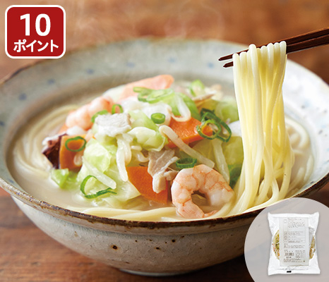 野菜や豚肉、海鮮など、具材が7種も入った冷凍ちゃんぽんです。お鍋一つで作れるので、ぱぱっとランチにも重宝。