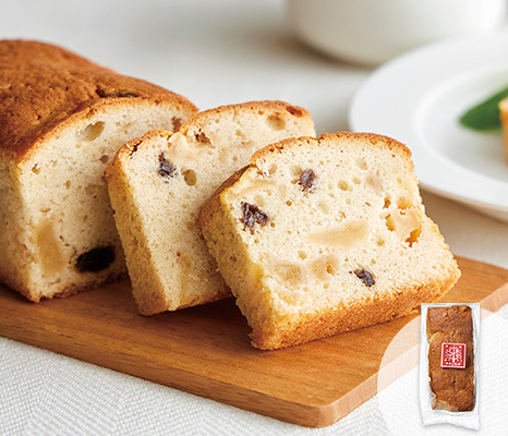 大地を守る会の生産者、原さんのりんごを使ったケーキです。生地に煮たりんごと煮汁を加え、風味豊かに仕上げました。