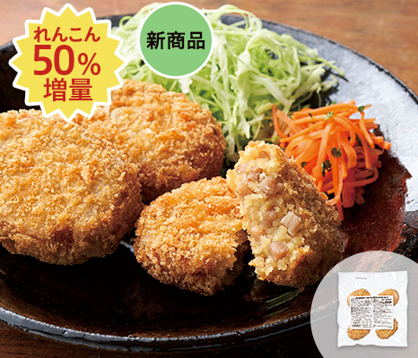 鹿児島県産さつまいもを使用した、秋を感じられるコロッケです。食感のアクセントになるれんこんを50%増量中。