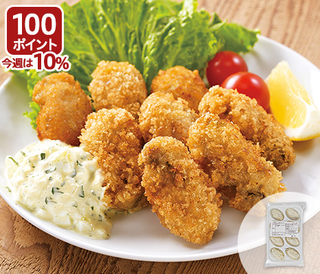 濃厚な味に定評がある広島県産のカキのなかでも、身入りの良いものに限定。冷凍のまま揚げるだけと簡単です。