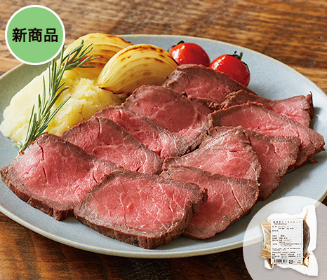 脂肪分が少なく赤身肉がおいしい短角牛。そのおいしさを活かし、贅沢なローストビーフにしました。