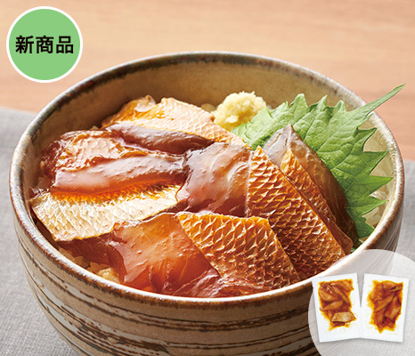 新潟県産レンコ鯛をワンフローズンで仕上げた漬け丼です。解凍してごはんにのせるだけで食卓の主役ができ上がります。