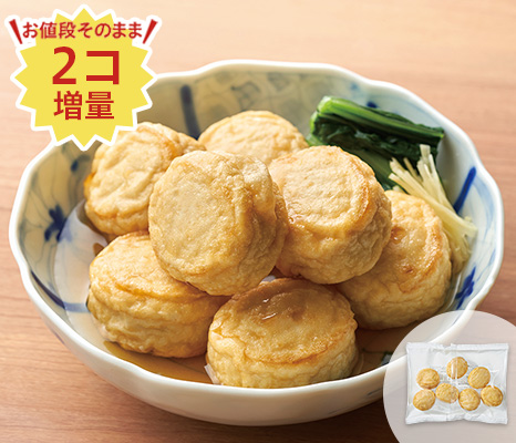 国産スケトウダラのすり身と国産大豆の豆腐を合わせ、米油でカラリと揚げました。さっと煮る他、解凍するだけでも一品に。
