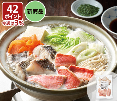 鍋用の切身にした真ダラとキンメダイのセット。キンメダイは、一晩冷蔵庫で塩をなじませることでしっとりとした食感に。