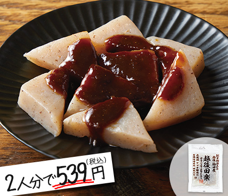 日本古来から伝わるこんにゃく芋「和玉」を使って伝統製法で作った、歯ごたえも味しみも良いこんにゃく。田楽味噌付き。