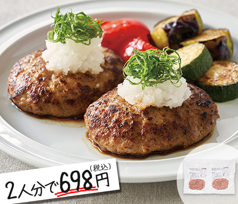 国産の牛肉と豚肉、ソテーした玉ねぎなどを使用。隠し味の国産丸大豆醤油が、お肉のおいしさを際立たせています。