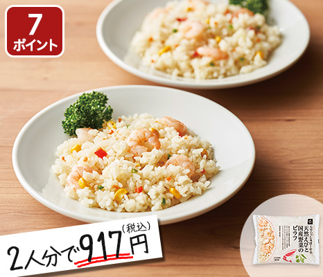 5種の国産野菜を使用した、バターの風味豊かな天然エビのピラフです。チキンのうまみが感じられるあっさり味。