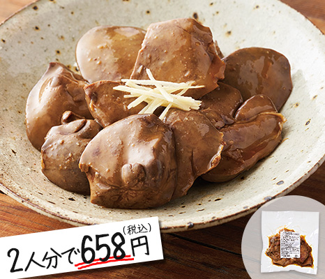 新潟県産の銘柄鶏「越の鶏」のレバーを甘辛く煮込みました。ていねいな下処理による、なめらかな食感が自慢です。