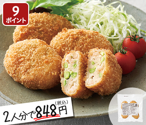 粗放養殖(環境に配慮した養殖方法)で育てたバナメイエビを、魚肉のすり身と豆腐でつないでフライにしました。国産枝豆と玉ねぎが彩りを添えます。