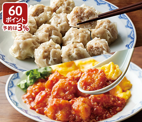 うまみこい豚のシュウマイと天然えびのチリソース。温めるだけで、簡単に本格中華の一品が楽しめます。