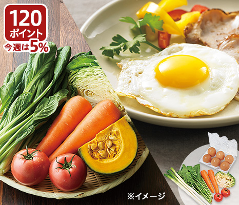 単品で購入するよりお得な「畑まるごと野菜セット5選」、のびのび育った「大地を守る会の平飼卵 6コ」のセット。