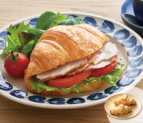 北海道産小麦粉を使ったパン生地を、幾重にも織り込んで焼き上げました。国産バターの香りが口いっぱいに広がります。