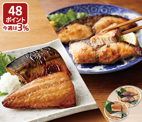 脂がのったノルウェー産サバのみりん醤油漬けと、天然ものの身が締まった長崎産ブリの塩麹漬けを合わせました。