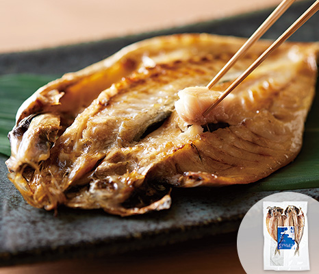 朝に漁獲された真アジを開きました。職人が厳選した真アジを干物にしているので、質にも鮮度にも自信があります。