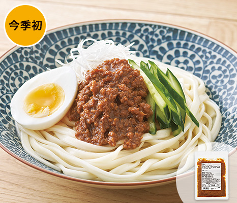 国産の豚肉に国産の長ねぎ、生姜などを加え、ピリ辛味に仕上げました。お好みの麺にかけてどうぞ。きゅうりを添えても。