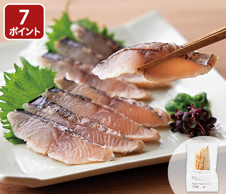 一本釣りした「サワラ」のみを使用し、香ばしいタタキにしました。鮮度の良さともちもち食感が魅力です。