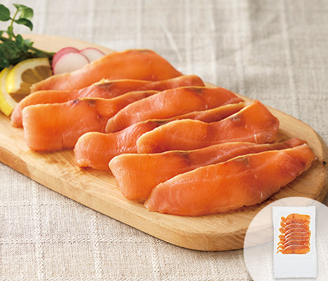北海道のオホーツク海で獲れる白鮭を、塩のみで仕上げました。白鮭本来のうまみとスモークのバランスが絶妙です。