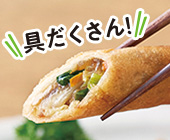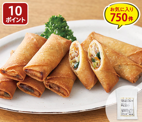 国産小麦の春巻きの皮は、約3分揚げ焼きするだけでパリパリに。具は大地を守る会の野菜と豚肉がメインです。