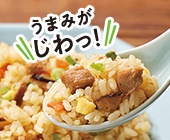 直火炒めのパラパラ食感を温めるだけで楽しめるように仕上げたチャーハンです。アミノ酸などは使わずに味付けしています。