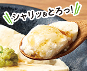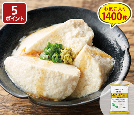 国産大豆と国産山芋を使った、なめらかな豆腐です。山芋のとろっとした食感と風味が絶妙。椿き家特製のタレ付きです。