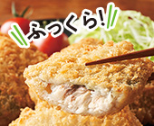 国産アカイカ(ムラサキイカ)の、身が厚くやわらかな胴部分を使用。食べやすいよう包丁目を入れ、衣を付けました。