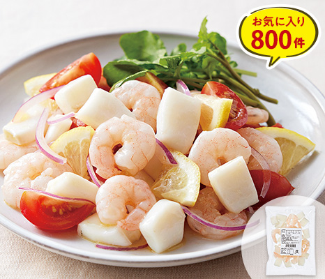 天然エビとイカをミックス。工場独自の海洋深層水漬け込み技術を駆使し、天然素材だけで弾力のある食感を保っています。
