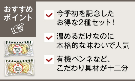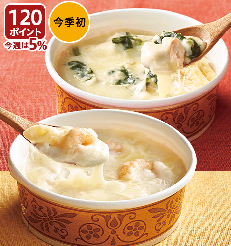 人気のグラタン2種セットがお買い得。海鮮のうまみが溶け込んだホワイトソースと、とろけるチーズが具材に絡みます。