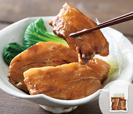 「みのり醤油」などを使用した調味ダレで、国産の豚肉を煮込みました。味がしみ込み、箸で崩れるほどほろっとやわらか。