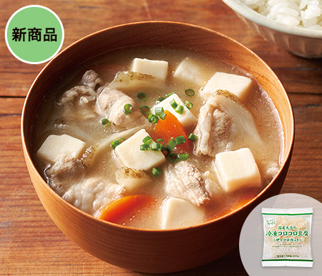 国産大豆で作った冷凍豆腐です。約15mm角にカット済みで切る手間いらず。さっと味噌汁やスープ、麻婆豆腐などに。