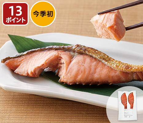 4㎏以上の身質、身の色、脂のりが良い秋鮭を使用。塩のみでゆっくり水分を取り除き、凝縮したうまみが特徴です。