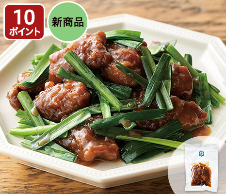 国産豚レバーの唐揚げと、オイスターソースや天然醸造濃口醤油などで作ったこく深いタレが好相性。野菜と炒めてどうぞ。