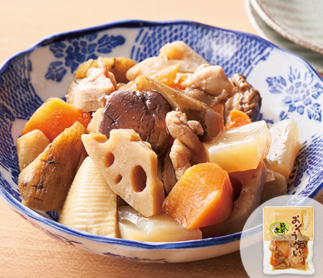 国産具材を炒めてから天然だしで煮込んだ、本格派の筑前煮です。電子レンジで温めるだけで、うまみ豊かな一品が完成。