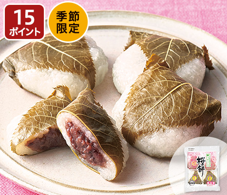 国産のもち米を使用した道明寺粉の生地で、北海道産小豆で作った粒あんを包みました。桜葉がふわりと香ります。