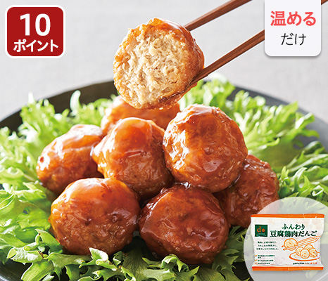 平飼い育ちの国産鶏肉に、国産大豆で作った豆腐を加えてふわふわの食感に仕上げました。甘酢ダレがしっかり絡んでいます。