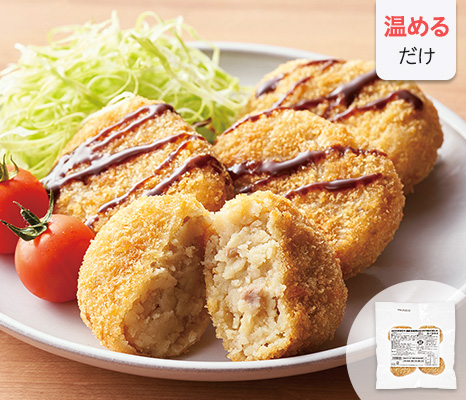 ほっくりとした鹿児島県産じゃがいもと、うまみのある国産合挽肉のコロッケです。シンプルながら飽きのこない味わい。