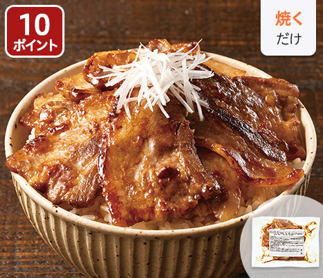 国産の厚切り豚バラ肉を、本場・帯広風の濃厚な甘辛ダレで味付け。さっと焼いてごはんにのせれば完成です。