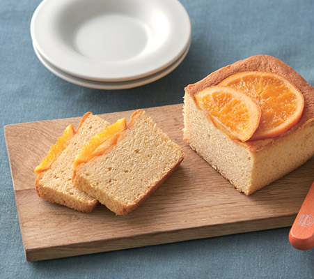 生地にみかんジュース、トッピングにネーブルオレンジを使用。しっとりさわやかな風味です。