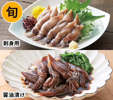 鳥取県境港市から今が旬のホタルイカをお刺身と醬油漬けで楽しむお得なセットです。