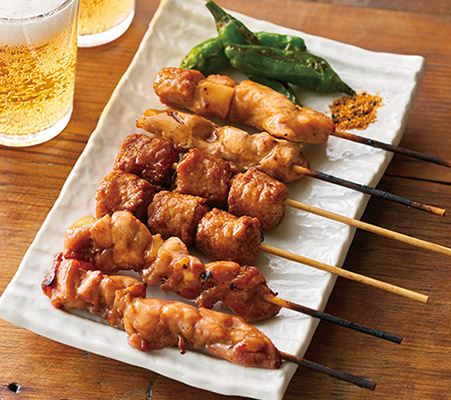 モモ、ムネ、つくねの3種類6本入りの食べきりセット。醤油ベースのタレは焼き鳥丼などにアレンジしても。