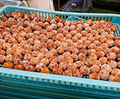 粗放養殖で育てたぷりぷりのバナメイエビを、魚肉のすり身と豆腐でつなぎました。国産枝豆と玉ねぎが彩りを添えます。
