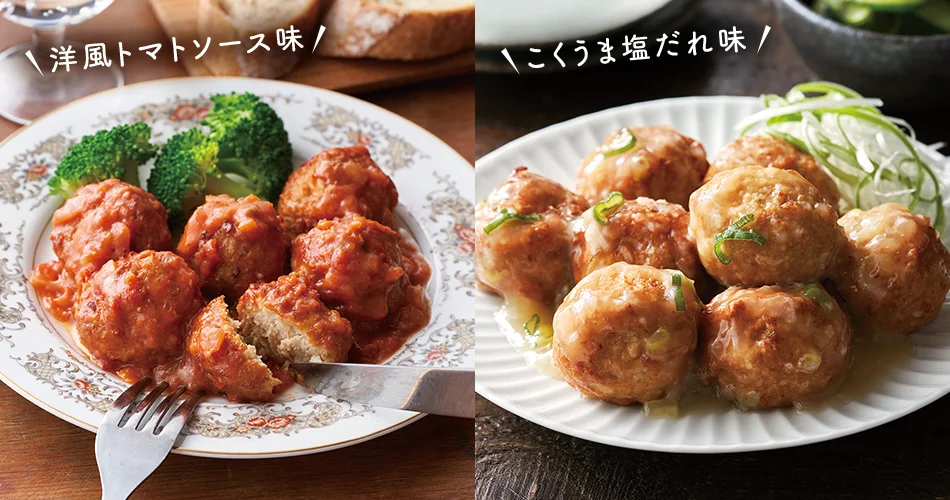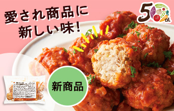はい、先日登場した「コクうま塩だれ味」に続き「洋風トマトソース味」の新登場です! 国産大豆100%の豆腐を使用し、野菜も加えた肉だんごは従来と同じこだわりです。さらに今回は、大人だけではなくお子さまにも楽しんでいただける商品として開発したのがポイントです。 |