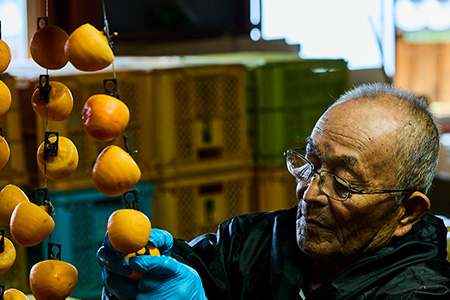「干し柿はただ干せばいいってもんじゃない。一定の時間をかけないと渋が残るから難しいんだ」と林さん。