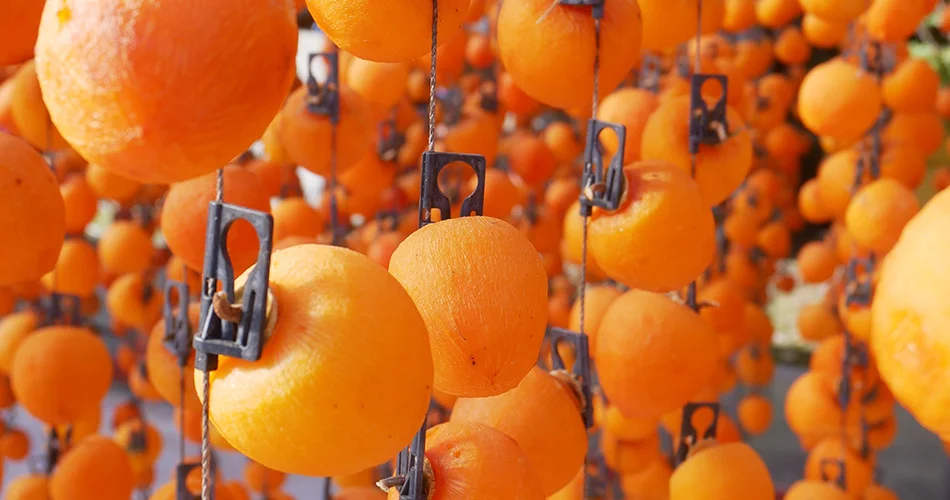 早く乾けば渋が残り、湿りすぎるとカビが発生するため、「程よく徐々に」乾くようこまめに柿の世話をして、渋が抜けるのを待つのです。