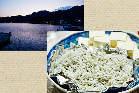 ▲ 海で獲れるカタクチイワシなどの稚魚を海水で炊いて、天日干しするチリメンジャコなども生産。