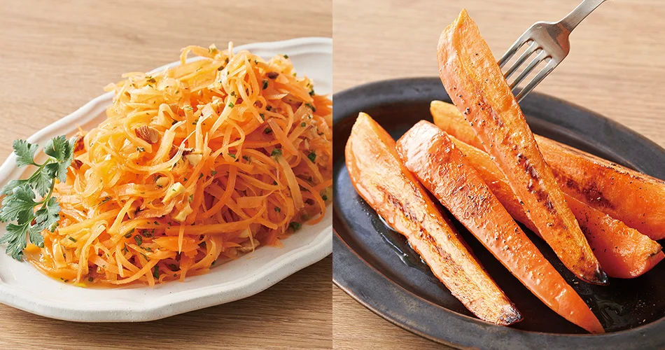 秋に収穫する通常の人参よりも甘く、みずみずしいので、まずはそのうまみをシンプルに満喫してください。グリルにすると香ばしく、味がぎゅっと凝縮されて美味。口に入れると甘く、やさしい味が広がります。