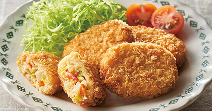 生産者のナカシン冷食は大地を守る会の冷凍惣菜でも人気のメーカー。昨年から季節ごとに登場しているコロッケシリーズは、あたためるだけで揚げたてのようなサクサク食感を楽しめると幅広く人気です。夏にはたっぷりとうもろこし、秋にはさつま芋とレンコン、冬には里芋とレンコンなど、四季折々の素材のおいしさが詰まったコロッケシリーズ。春の旬の味わいは、ぜひ本品でお楽しみください。