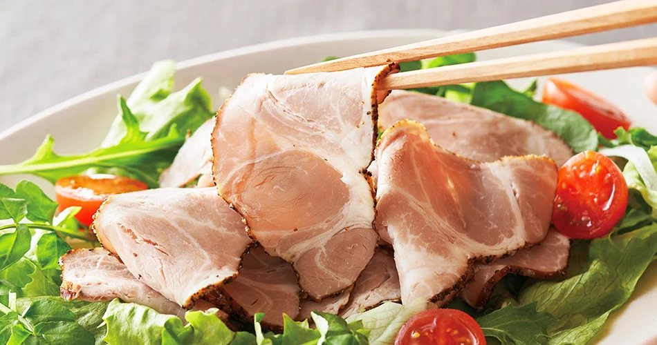 冷製のまましっとりした質感を楽しむのはもちろん、フライパンで軽く炙るのもおすすめ。熱を加えることで網目状の脂が溶け出し、ジューシーさが一層際立ちます。焼けた黒胡椒の香ばしさと溢れる肉汁が混ざり合う、より深く贅沢な味わいの変化をご堪能ください。