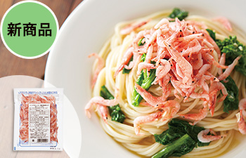 まずはそのまま、素材の味を。パスタやかき揚げはもちろん、味噌汁にひとにぎり加えれば、だしいらずの深い味わいに。グラタンやピザの具材で、桃色の彩りと香ばしさが映える華やかな食卓にもおすすめです。殻までやわらかいので、栄養もまるごとお楽しみください。